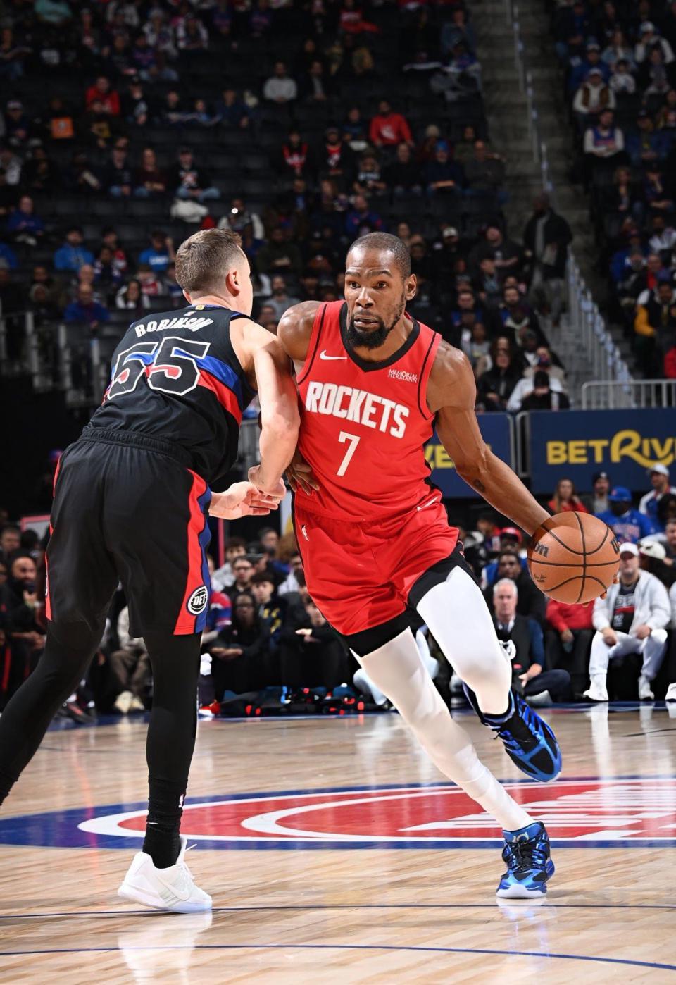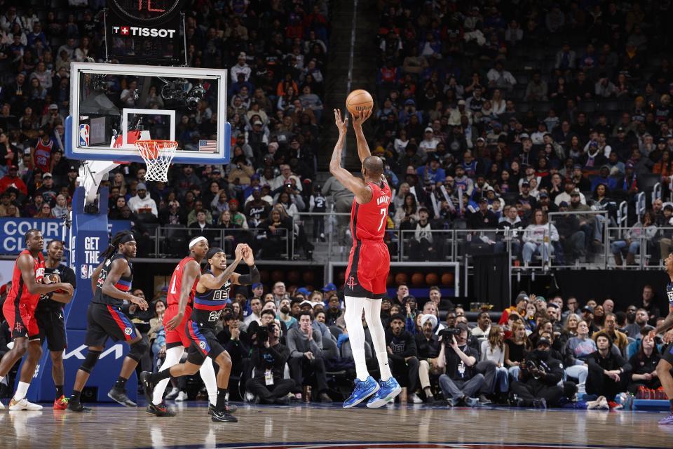 火箭队昨天刚刚经历加时赛惜败给76人队,今天他们迎来背靠背之战。不过火箭队首节便建立8分领先优势,次节比赛他们遭到活塞队追平比分。第三节比赛开始后,火箭队再度打出进攻高潮建立14分领先,不过他们随后在末节被对方打出10-1缩小分差,之后火箭队稳住局面,始终保持两位数领先,在杜兰特和谢泼德连续得手后,火箭队客场拿下胜利。